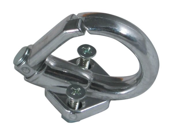 Handy metal hook clasp mounts to existing holes between choke knob and seat to carry a bag or hold your helmet. Fits 70s-80s Vespas. Can be retrofitted to earlier bikes, but requires drilling.