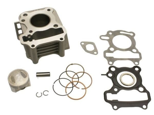 Naraku 50cc SYM and Peugeot 4-stroke 42mm Big Bore Cylinder Kit. Kit includes cylinder, piston, rings, piston pin, cir clips, head gasket, base gasket, exhaust gasket and cam chain tensioner gasket.